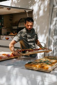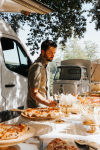 Devant vos invités, nos pizzaiolos réalisent les pizzas en direct.